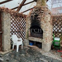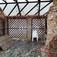 Построена прекрасная зона патио в стиле Итальянского шале, с большим рабочим очагом-камином. Патио обсажено декоративным виноградом.