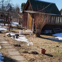 На участке имеются постройки: гостевой домик, и хозяйственные постройки: летний биотуалет, душ и дровница. На участке растут деревья: груша, яблоня, тёрен, вишня,- кустарники: малина чёрная и красная смородина, крыжовник. На грядках посажена клубника и в зиму: чеснок, морковь, лук, капуста. На участке также много цветов, декоративный кустарник, туя, ивушка. Еще много места для посадки чего-либо. Летний водопровод работает с мая по октябрь. Мебель, холодильник и садовый инвентарь остаются новым владельцам